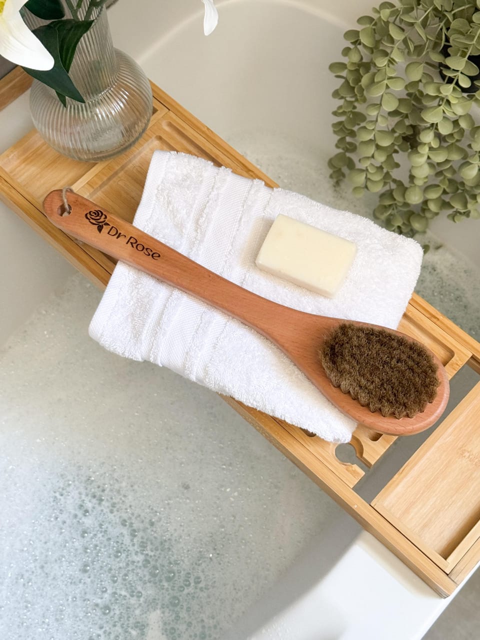 - تنشيط الدورة الدموية: يساعد تدليك الجسم بالفرشاة الجافة على تحفيز تدفق الدم تحت الجلد، مما يمنح البشرة نضارة طبيعية.